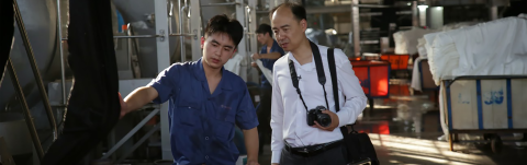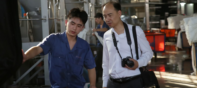 公众环境研究中心(IPE)主任马军在杭州纺织厂调研环境状况。